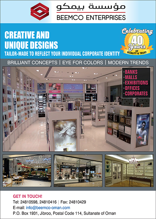 Beemco Enterprises is an Oman based leading Interior design and fitout contracting company Specializing in turnkey interior fitout projects in the commercial and office spaces for the past 4 decades. The company has been in the business of designing, installing and maintaining Interior and Exterior Fit Out works for reputed brands in shopping malls, reception halls, corporate offices, banks, standalone showrooms etc.
