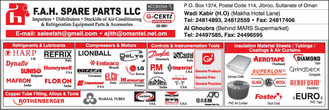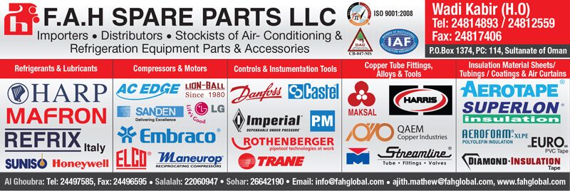 F.A.H Group started as a pioneer in its market when established as F.A.H Spare Parts L.L.C. in Sultanate of Oman in the year 1985. Since then the Company has successfully grown over the years and is one of the leading importer and distributor of air-conditioning and refrigeration equipment, parts and accessories. With a group of dedicated and a motivated workforce, the company has served to many organizations. Over the past two decades, F.A.H Group has successfully emerged and expanded its activities in trading and customer base in Middle East & India. In 2012, we achieved the ISO 9001:2008 Certification.