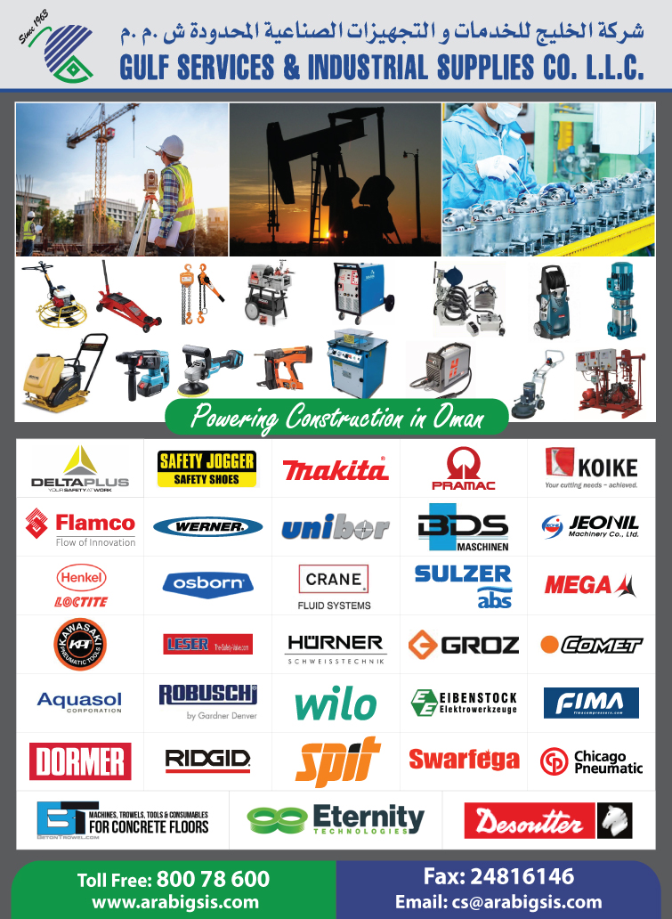 Gulf Services & Industrial Supplies Co LLC (GSIS), a part of ARABI HOLDING GROUP Kuwait has had the opportunity to partner with reputed international brands as well as several organizations engaged in the field of construction in Oman for well over 50 years & play a small but significant role in contributing towards the development of Oman over the years.