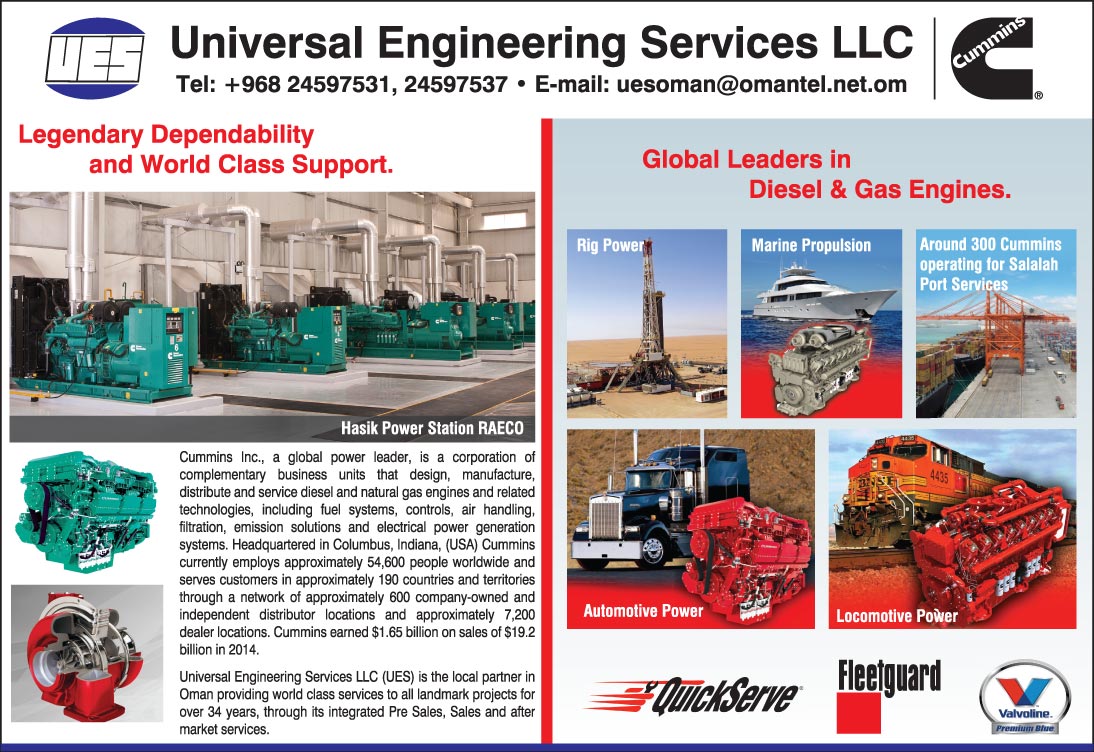 Universal Engineering Services LLC (UES), is the sole authorised agents for Cummins Power Generation, After Sales Services and Cummins Filtration (Fleet guard Filters). Cummins Power Generation is the leading manufacturer of reciprocating engine based power solutions & has a Global presence.